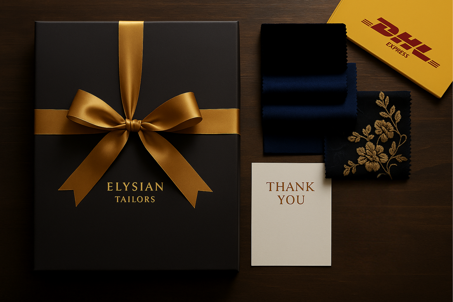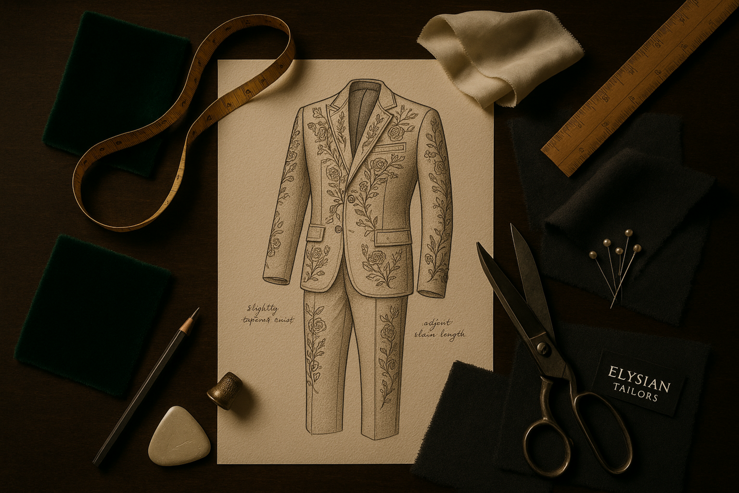 Every Elysian Tailors piece begins with your vision—transformed into reality through made-to-measure cuts, personalized detailing, and free concept sketches. From the first idea to the final stitch, it’s truly yours.