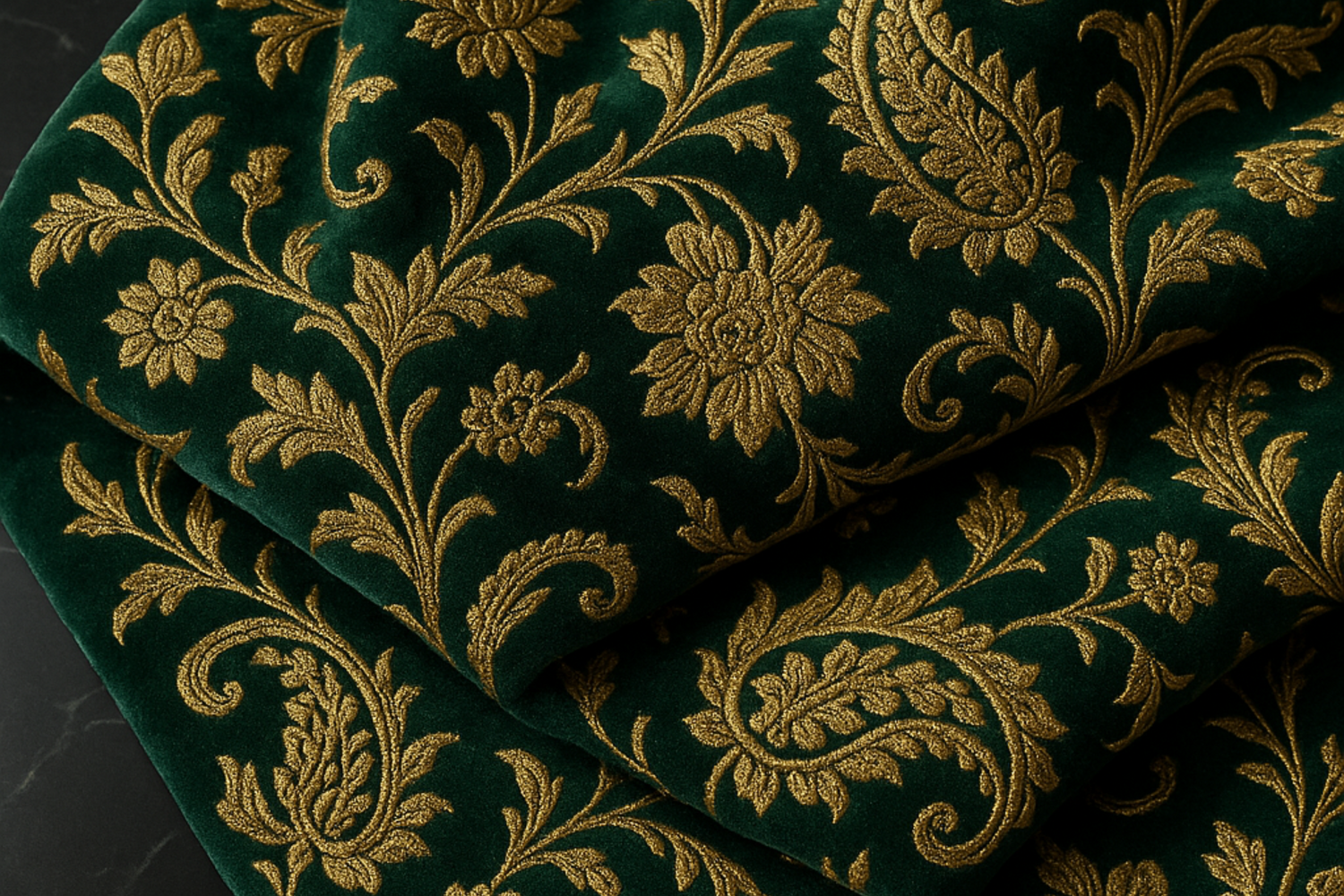 We use only the finest globally sourced fabrics—Italian silks, Indian velvets, English wools—brought to life with embroidery crafted by skilled artisans. No mass production, just timeless detail and uncompromising quality.